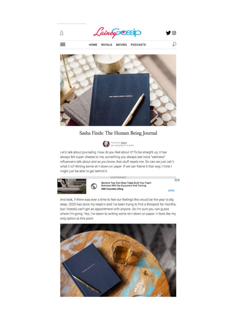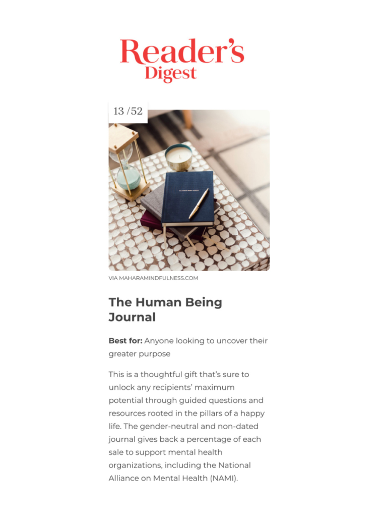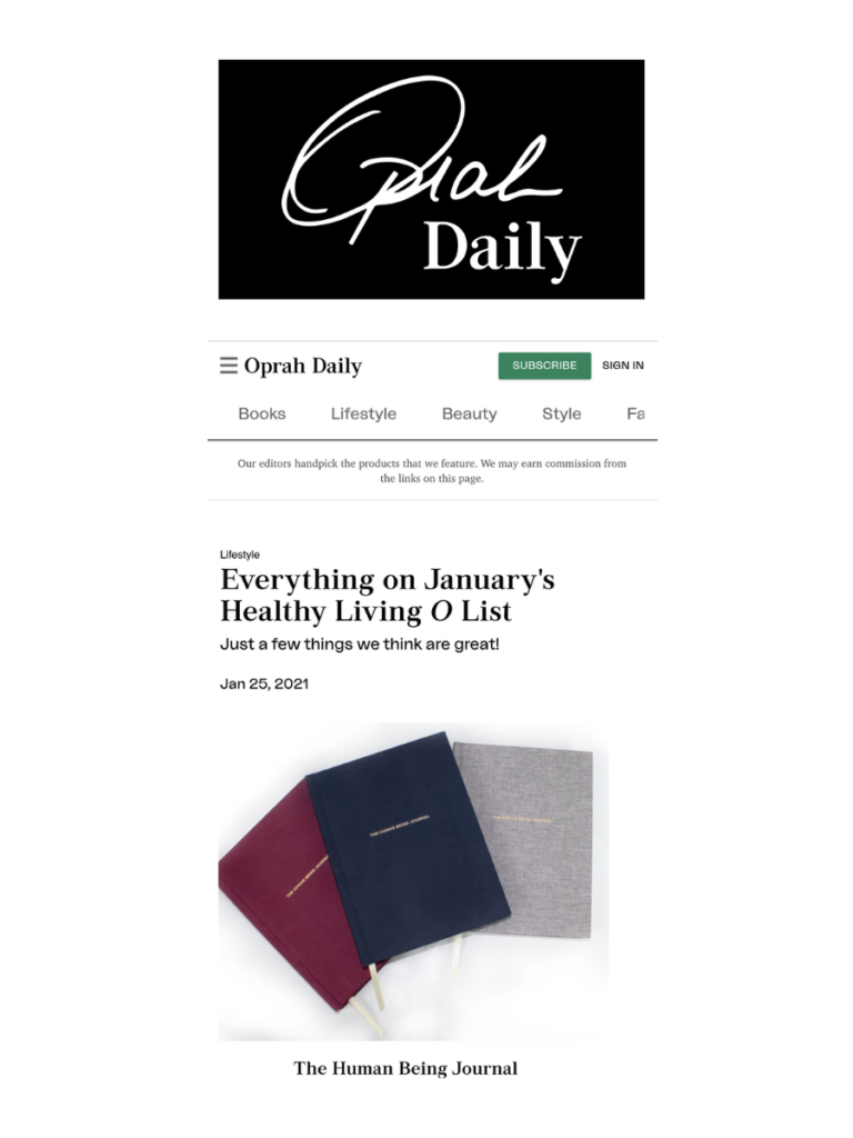 The Human Being Journal as featured in The New York Times, Forbes, The Ellen Show, Oprah Daily & more!